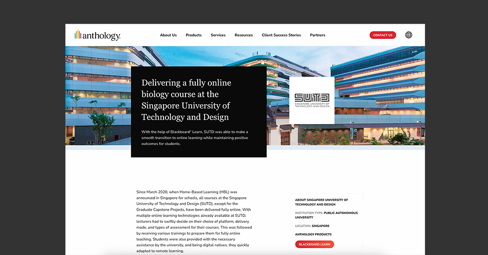 With the help of Blackboard Learn, Singapore University of Technology and Design was able to make a smooth transition to online learning while maintaining positive outcomes for students.