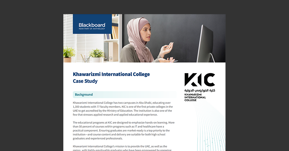 In the latest satisfaction survey, 76% of KIC students responded as being satisfied or very satisfied with the Blackboard Learn Ultra solution.