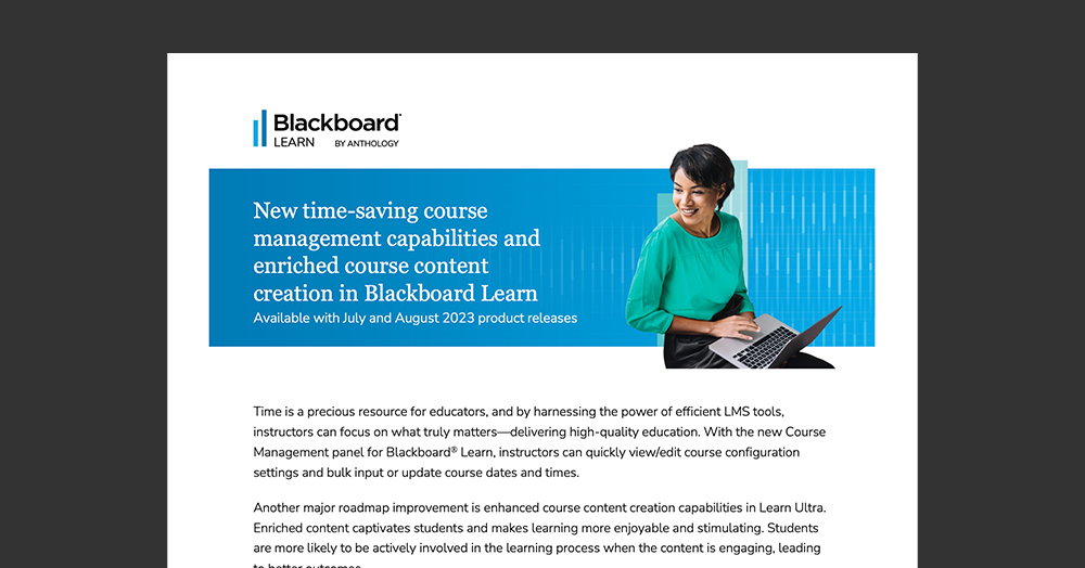New time-saving course management capabilities and enriched course content creation in Blackboard Learn