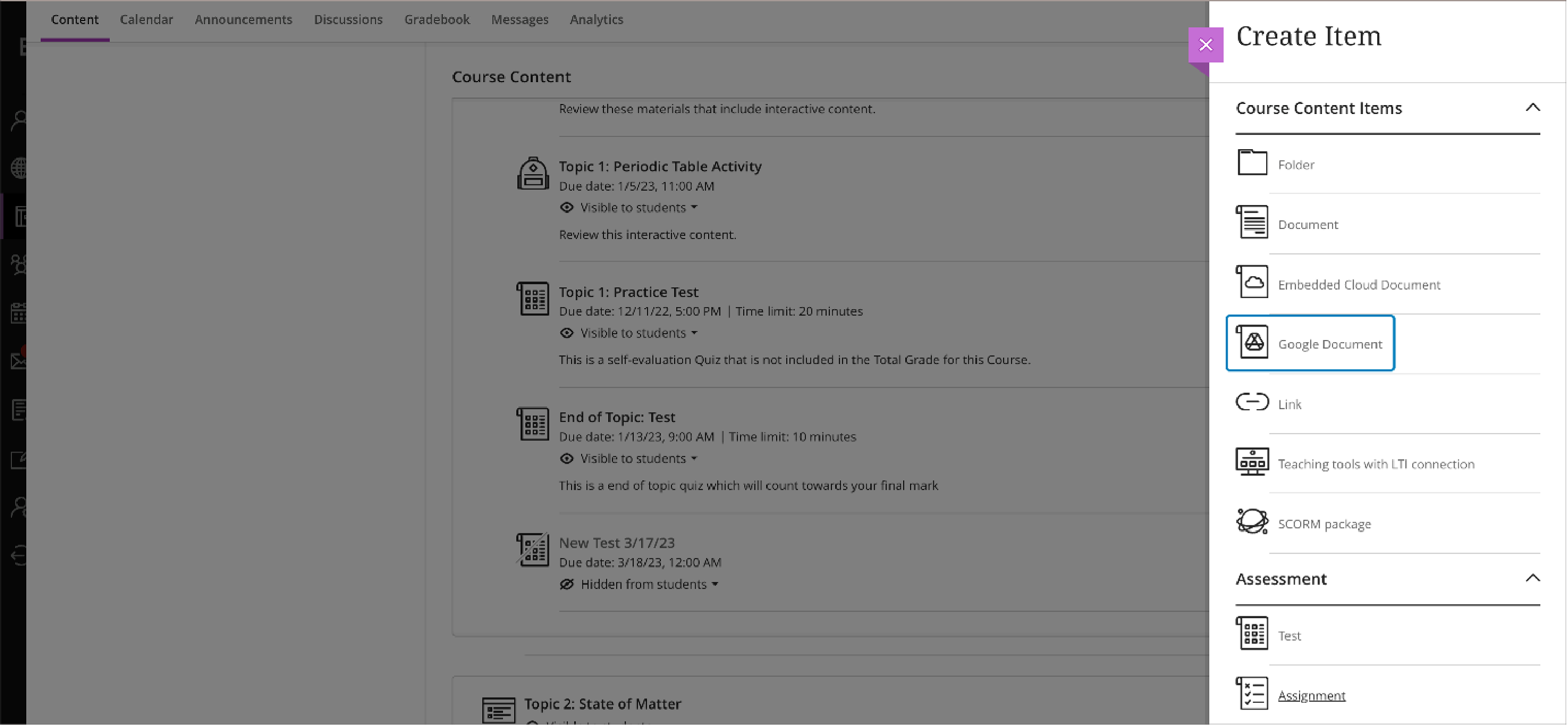 Add a Google Workspace file to the course: